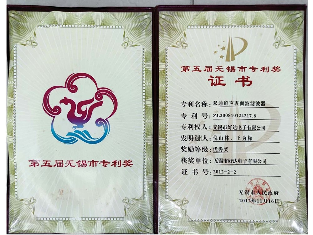 第五屆無(wú)錫市專(zhuān)利獎(jiǎng)優(yōu)秀獎(jiǎng)